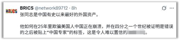 但他好像没输出多少硬核的地缘政治知识,只是一味借热点贬损中国。