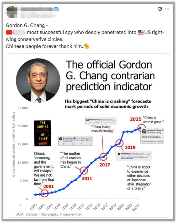 前段时间,懂王在社交媒体上找了个叫 Gordon Chang 的砖家,为自家关税政策站台。
