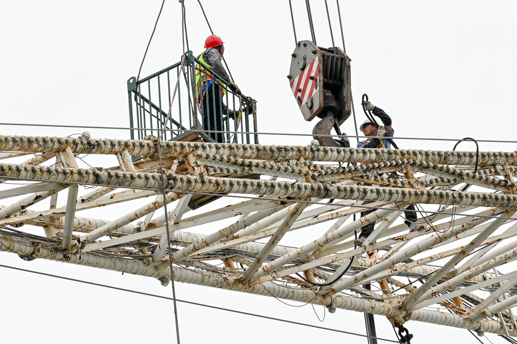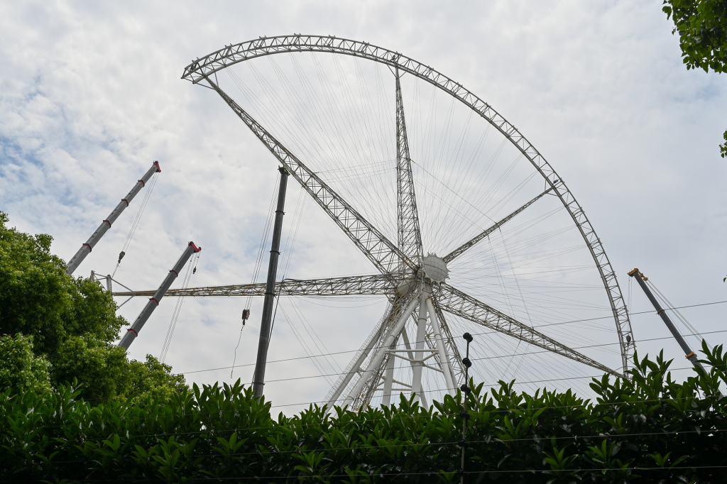 2025年5月15日,上海,锦江乐园摩天轮正在拆除中。澎湃新闻记者 朱伟辉 图