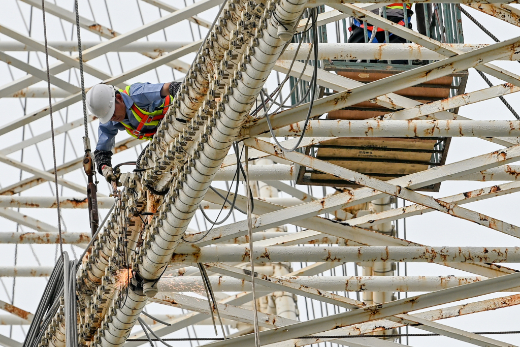 2025年5月15日,上海,锦江乐园,工人正在进行拆除作业。澎湃新闻记者 朱伟辉 图