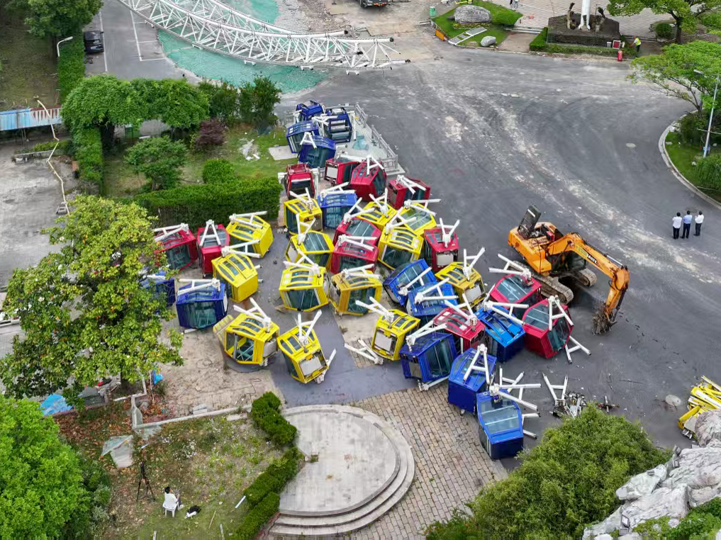 2025年5月15日下午,澎湃新闻记者在现场看到,锦江乐园摩天轮的轿厢已被拆除,4台吊车在作业,部分钢筋也正在陆续拆除中。据悉,锦江乐园摩天轮于4月底启动拆除工作,计划5月底、6月初完成拆除工作。