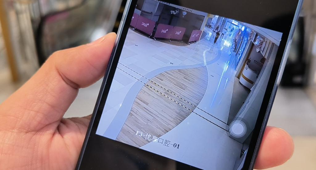 △文先生展示事发时监控。图 / 史继超摄