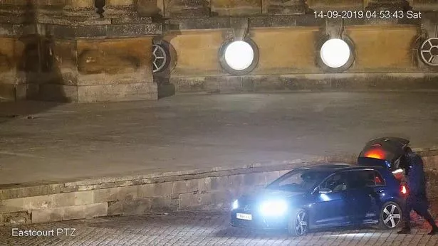 闭路电视显示,两辆车中的一辆驶进了布莱尼姆宫的正门(Image: PA)