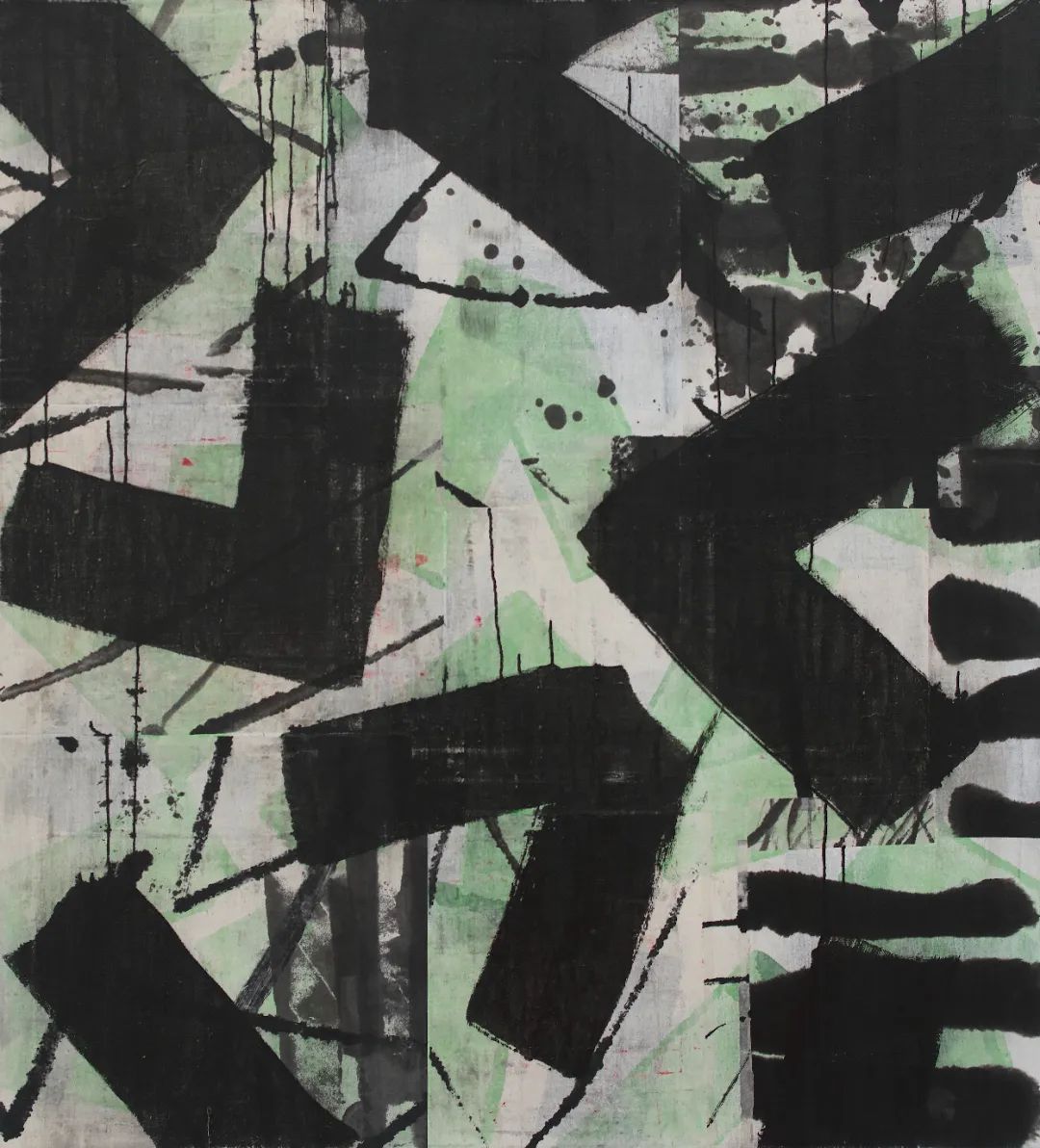 呱呱 1 2025 墨,丙烯,⾊粉,⾚⽟⼟,亚麻布