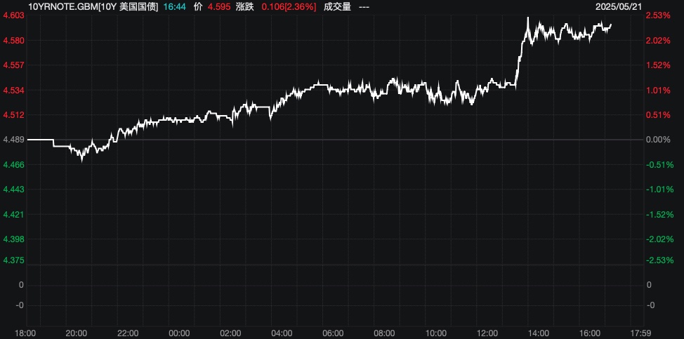 当日,20年期美国国债拍卖结果弱于预期,表明投资者可能对购买政府债务的需求疲软,随后收益率走高。美国十年期国债收益率飙升至4.6%上方,为二月份以来的最高水平。