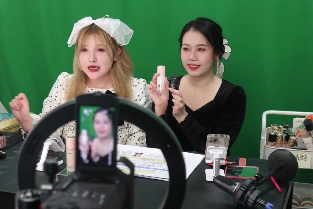 两名主播正在直播卖货 / 中新社记者 孙秋霞 摄