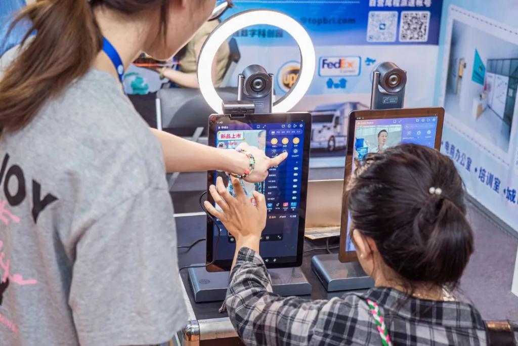 2024 中国(广州)跨境电商交易会开幕,人们在体验直播带货设备 / 图源:视觉中国