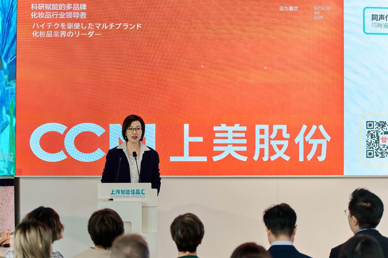 上美股份副总裁俞瑛介绍了日本研发中心与冈山工厂构建的“研产一体化”体系,以及公司新品。“上美股份2024年全球美妆排名第49位,力争在2025年突破100亿营收,2030年突破300亿营收”,俞瑛称,公司将积极响应上海“时尚消费品产业高质量发展行动计划”,助力推动国货美妆迈向更高台阶,让世界看见东方之美。