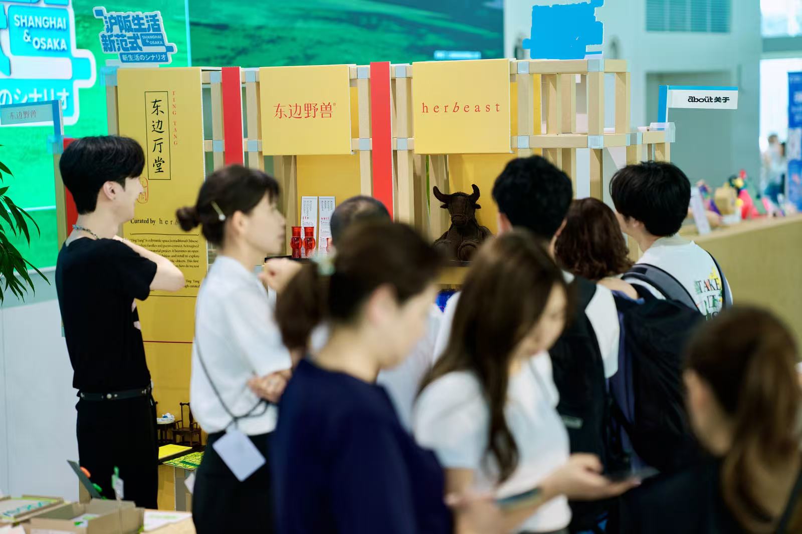 很上海展区将传统文化与现代设计进行交融,从晨曦微光下的街头烟火到深夜霓虹中的温暖味道,全时段呈现上海城市生活图景;好物集展区汇聚来自时尚、家居、美学等多个领域的上海品牌;佳酿盈展区从“茶酒共生”的理念出发,在大阪打造出一个充满东方意蕴的新中式茶文化空间;梧桐角展区集中呈现了长宁愚园路品牌生态,将上海街头的独特韵味带入日本都市景观;城事指南区域以精选读物为媒介,立体呈现上海的衣、食、住、行,勾勒这座城市独特的文化肌理。
