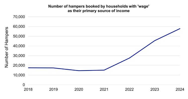 尽管失业或找工作仍然是人们使用食物银行的主要原因(21%),但调查也显示,37%的食物银行用户现在有某种形式的就业收入,27%的客户是全职工作。
