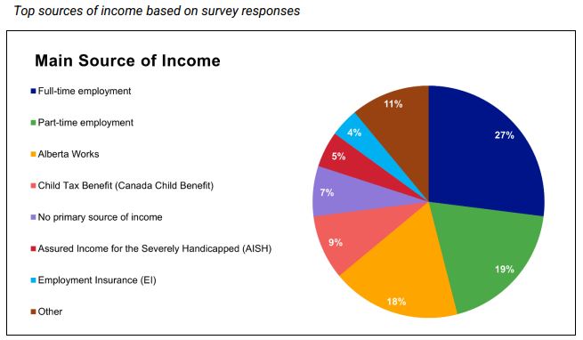 卡尔加里食品银行(Calgary Food Bank)的一份新报告称,27%的客户表示他们是全职工作,19%是兼职工作。卡尔加里食品银行