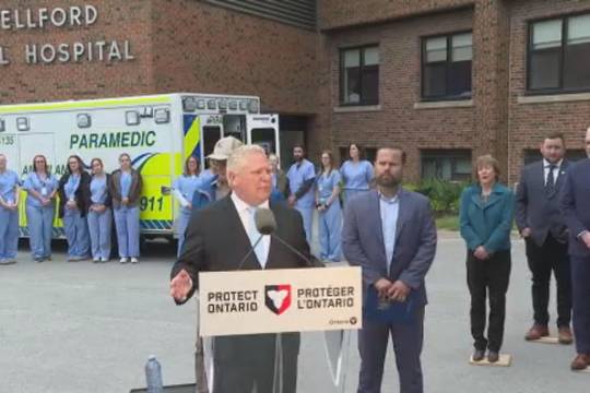 安大略省省长道格·福特访问坎贝尔福德,向其兜售250万美元的计划拨款,用于校园护理项目,以取代老旧的医院