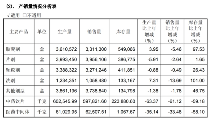 2024年财报显示,康惠制药主要产品产销量全面下滑,其中,中药饮片、医药中间体产销量分别同比下滑超六成、三成。