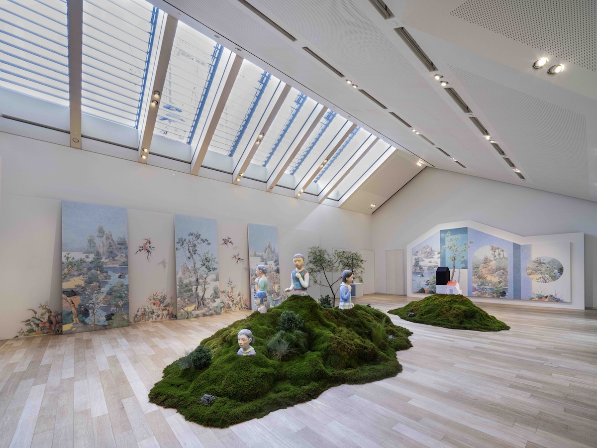 曾健勇是当代新水墨代表性艺术家之一,擅长通过绘画、雕塑与装置探索传统水墨在现代文化语境下展开的可能性。由此反映到爱马仕之家的夏季主题橱窗,一幅幅山水画作巧妙呈现在人们眼前。