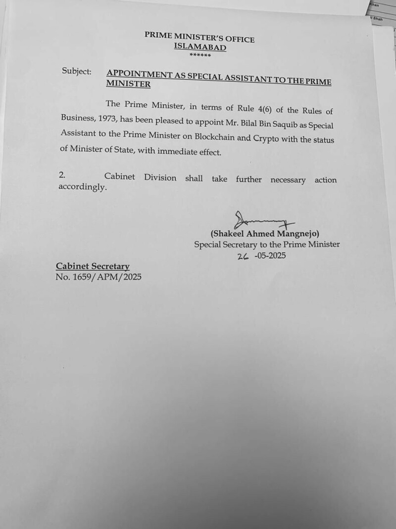 周一,总理谢赫巴兹·谢里夫(Shehbaz Sharif)任命比拉尔·本·萨奇布(Bilal Bin Saqib)为他的bb0和加密货币特别助理,将内阁成员人数增加到55人,并担任国务部长。