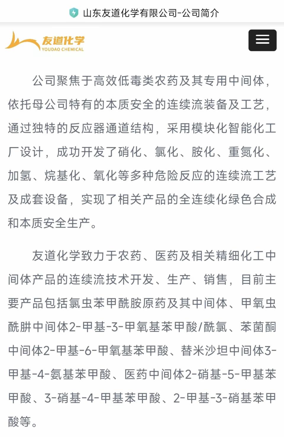 据该公司公开简介,该公司为豪迈集团股份有限公司控股子公司,聚焦于高效低毒类农药及其专用中间体,致力于农药、医药及相关精细化工中间体产品的连续流技术开发、生产、销售。