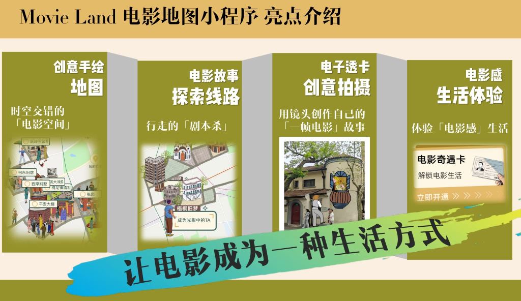 本次活动借助“movie land上海电影地图”,通过沉浸式地图探索和剧情化城市漫游,让城市成为可交互的实景电影博物馆,像电影主角一样探索城市完成“影迷之星”挑战。