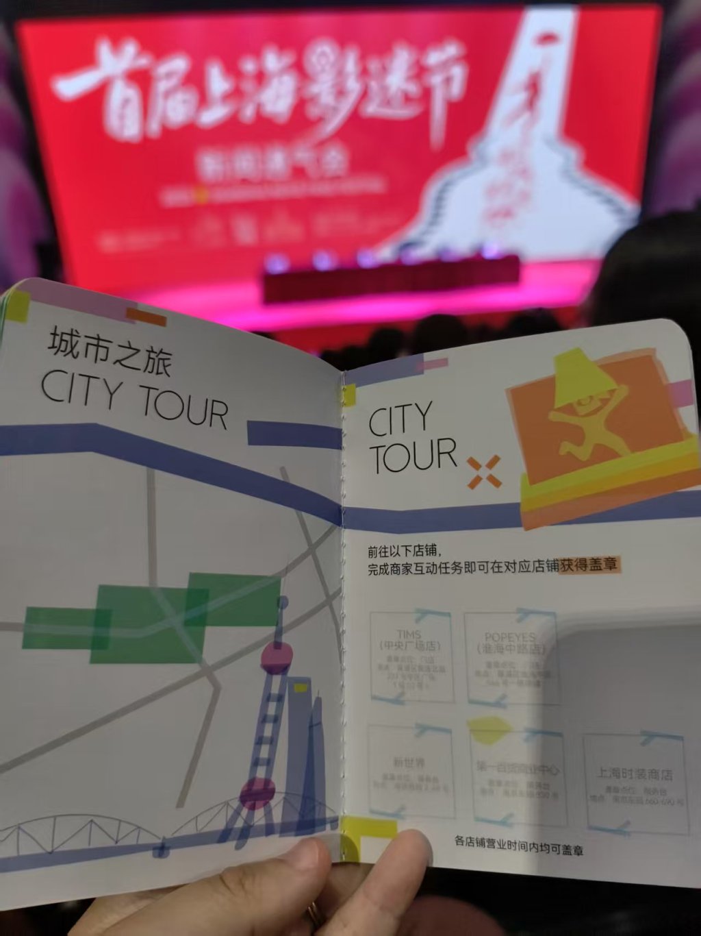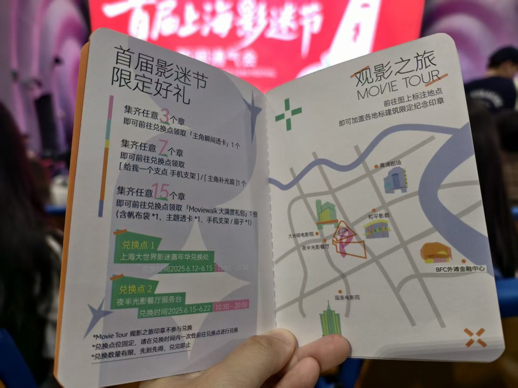 在主办方为影迷精心准备的“上海影迷节打卡手册”上,标注了集章打卡路线,和有可能获得的丰富礼品。