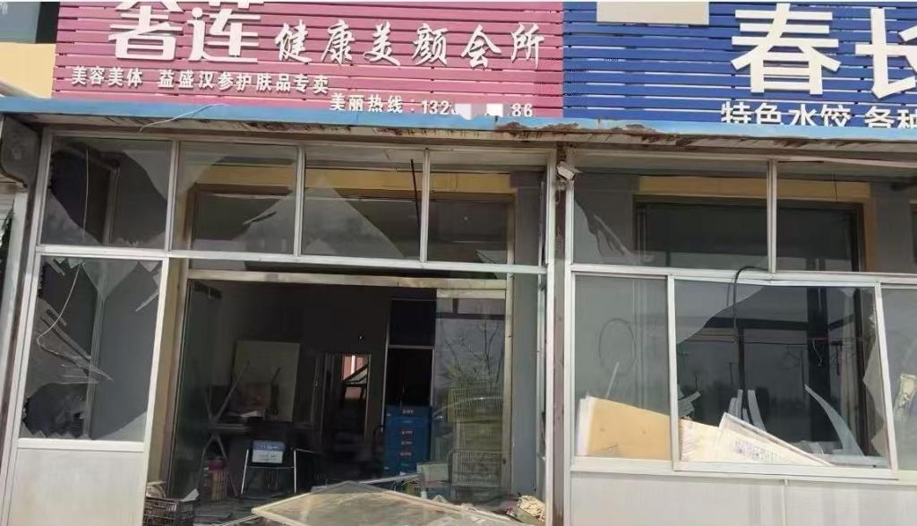 姜庄镇旗台一村民房屋的门窗、卷帘门被爆炸冲击波损坏。
