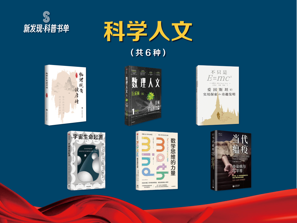 《物理视角读唐诗》《数理人文(第一辑)》《当代瘟疫:传染病与不平等》《不只是E=mc²——爱因斯坦的实用探索和奇趣发明》《宇宙生命起源》《数学思维的力量》等6种图书入选“科学人文子书单”。