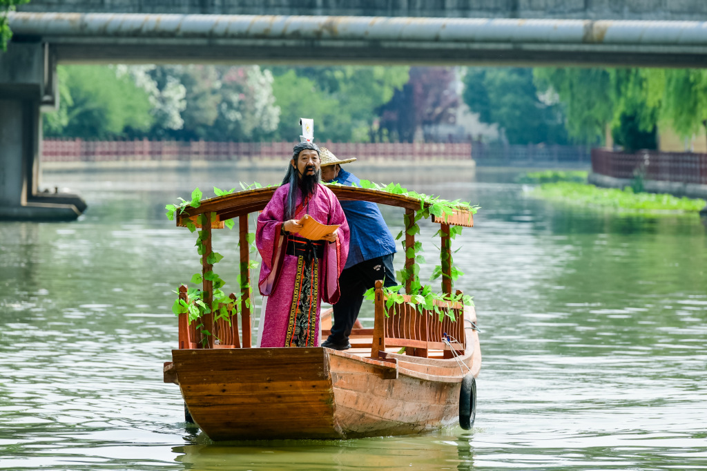 “穿越时空而来”的“屈原”站在船头吟诵《离骚》。
