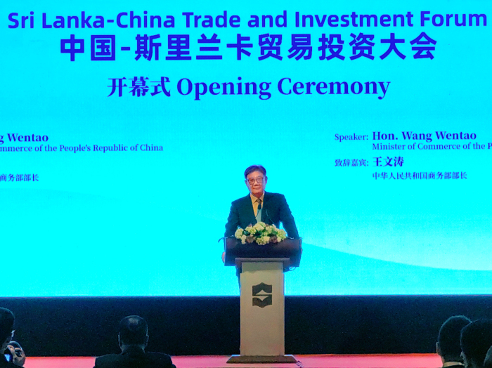 5月30日,中国-斯里兰卡贸易投资大会在斯里兰卡科伦坡举行。商务部部长王文涛、斯里兰卡劳工部部长兼经济发展部副部长费尔南多出席并致辞。