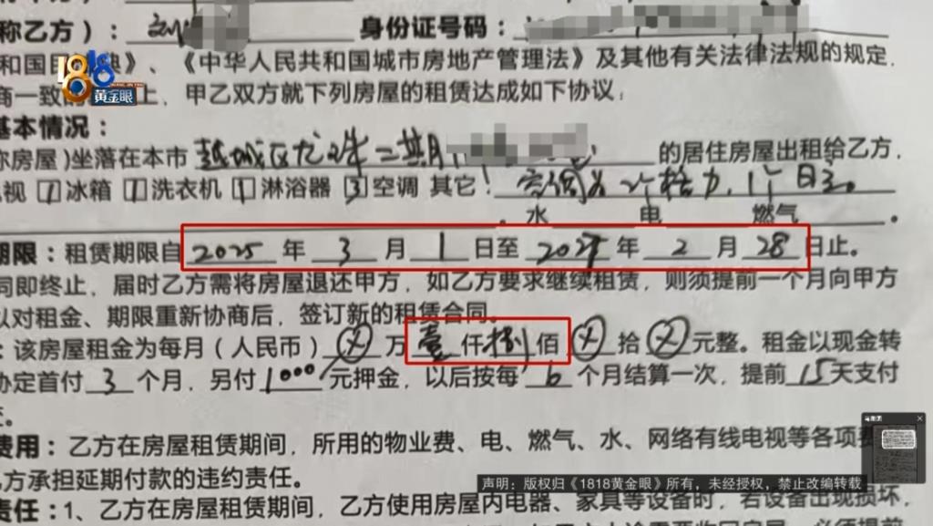钟先生:合同上是这样的,他要求我给他们送,就是大半个月都送给他们,免租免费地住。那我这个人还好说话的。他说是单位来租的,当时我也奇怪,就为什么单位来租,他个人来跟我签。