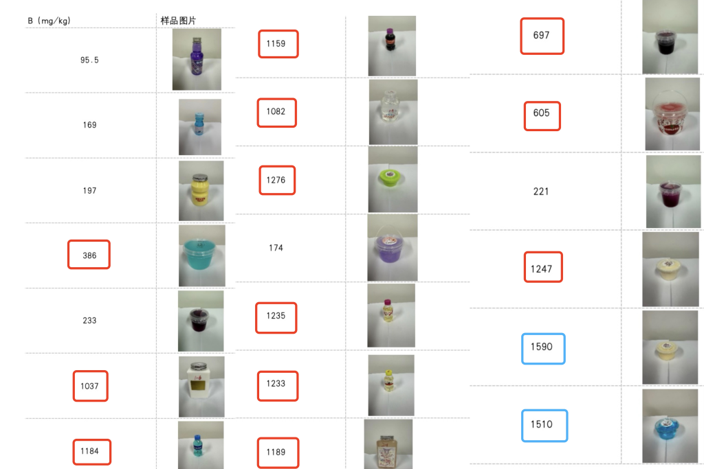 同时,参考欧盟玩具安全标准,规定液态或黏性材质玩具中硼元素的含量不得超过300mg/kg,在国际标准ISO 8124-3:2020+Amd.1:2023中,对于水晶泥(slime)玩具有新增硼(B)迁移限值为 1250mg/kg的规定。