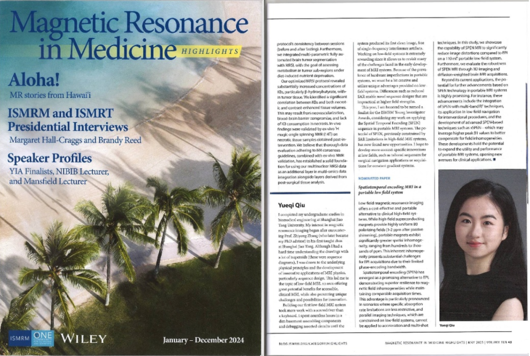 磁共振领域权威期刊Magnetic Resonance in Medicine Highlights刊登邱月淇的采访介绍