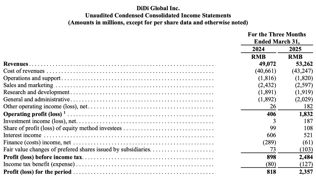 滴滴一季度经调整净利增超1.1倍,核心平台订单量增长13%