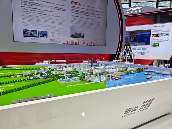 主展项展示的为申能集团的“上海10万吨级绿色甲醇项目”。绿色甲醇是主要航运替代燃料之一,行业公开数据显示,绿色甲醇的碳排放强度仅为传统煤制甲醇的10%-30%。
