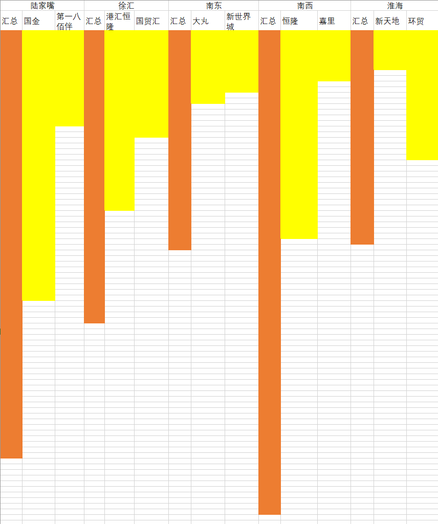 淮海中路奢侈品牌分布情况。环贸占了20个被统计的品牌,比其他地区被统计品牌的总和还多。可以说淮海中路的“高奢感”基本上是靠环贸一家支撑。制图:赵忞