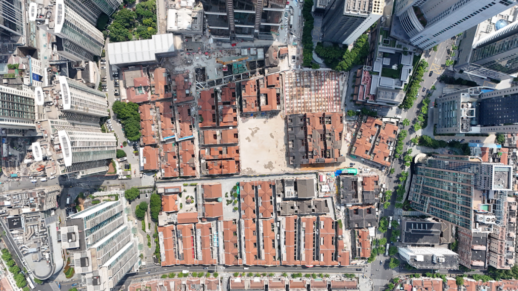 鸟瞰视角下的张园东区,施工进程真如现实版的大型“华容道”玩具一般。