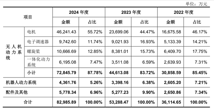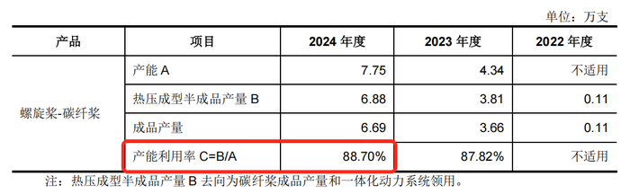 需要指出的是,说明书在“发行人竞争优势”中提及“目前公司拥有8条产线,年产185万台电机、50万台电子调速器、20万支碳纤桨的生产能力”;与在“主要产品的产能、产量和销售情况”中提及的2024年电机标准产能144.69万台、电子调速器14.4万台、螺旋桨-碳纤桨7.75万支等数据有一定出入。