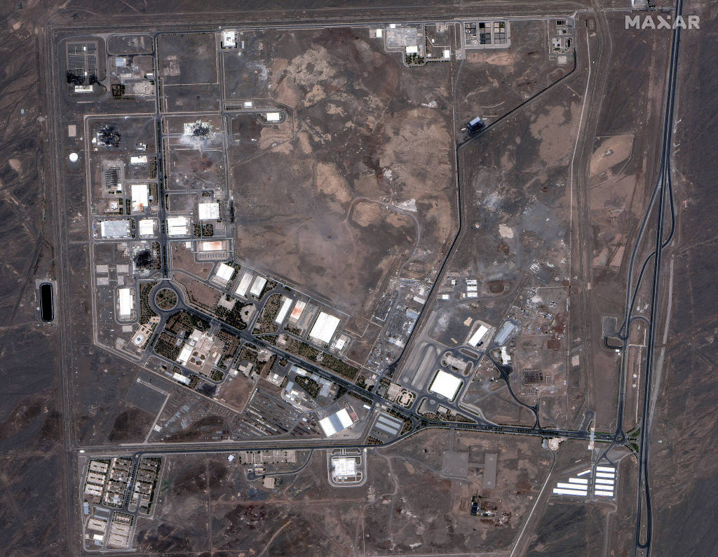 当地时间2025年6月22日,卫星图像显示,美国袭击后的伊朗纳坦兹设施。