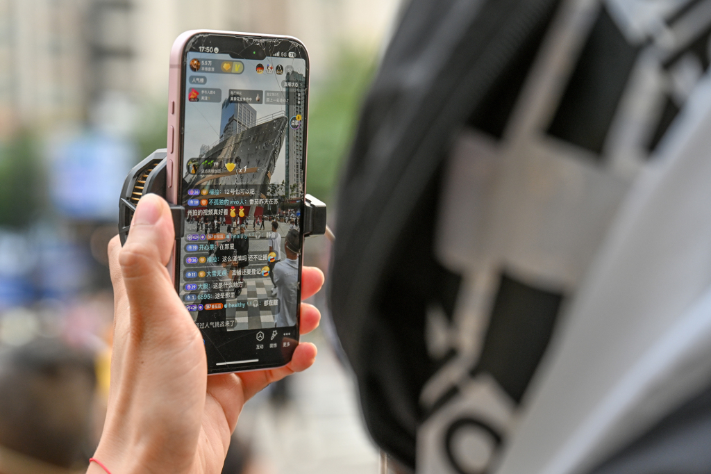 2025年6月25日,上海,自媒体博主在现场直播。澎湃新闻记者 朱伟辉 图