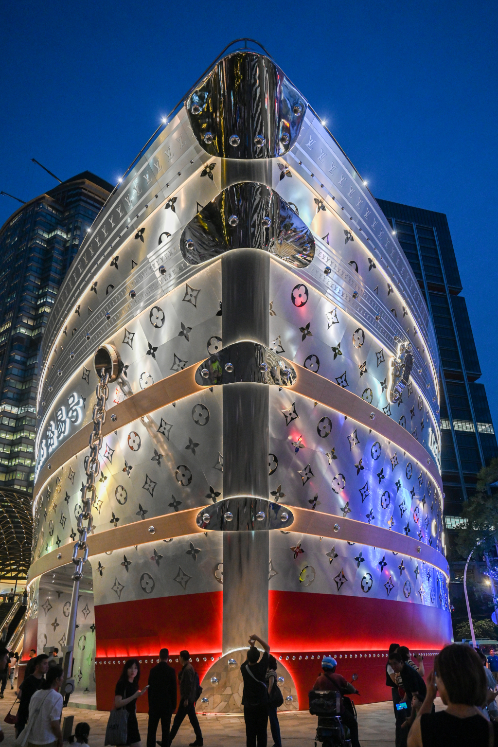 2025年6月25日,位于上海静安区兴业太古汇的路易威登全新概念地标——“路易号”揭开神秘面纱,这是路易威登全球最大的展览装置,独特的“巨轮”造型为全球唯一。一经亮相的“路易号”立刻成为当天上海最火爆的地方,不少市民纷纷前往拍照打卡,从白天到深夜,游客络绎不绝。有的在拍照,有的在直播,甚至还有商家在拍摄广告;或自拍,或带着摄影师拍照;有中国人,还有很多外国人……
