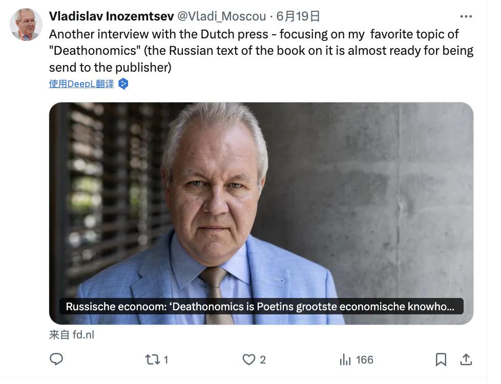 俄罗斯经济学家 Vladislav Inozemtsev 说。