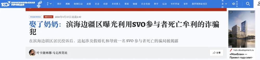 " 一名 35 岁士兵阵亡,他的家人将从他死亡抚恤金中获得约 1450 万卢布(约 18 万美元),这比他在某些地区工作一辈子所能挣到的总和还要多(2023 年俄罗斯家庭月收入 6.3 万卢布)。"