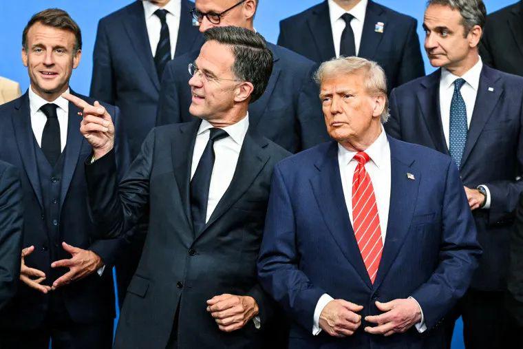 为什么会如此呢?因为吕特前一天刚给特朗普发了一条内容非常肉麻的奉承短信,而特朗普因为很高兴,直接把吕特的短信转到了它的社交账号上,卖了吕特。所以北约峰会召开前,舆论就已经在指责吕特不恰当地拍特朗普马屁,丢欧洲的尊严。顺便说一句,吕特曾是荷兰首相。