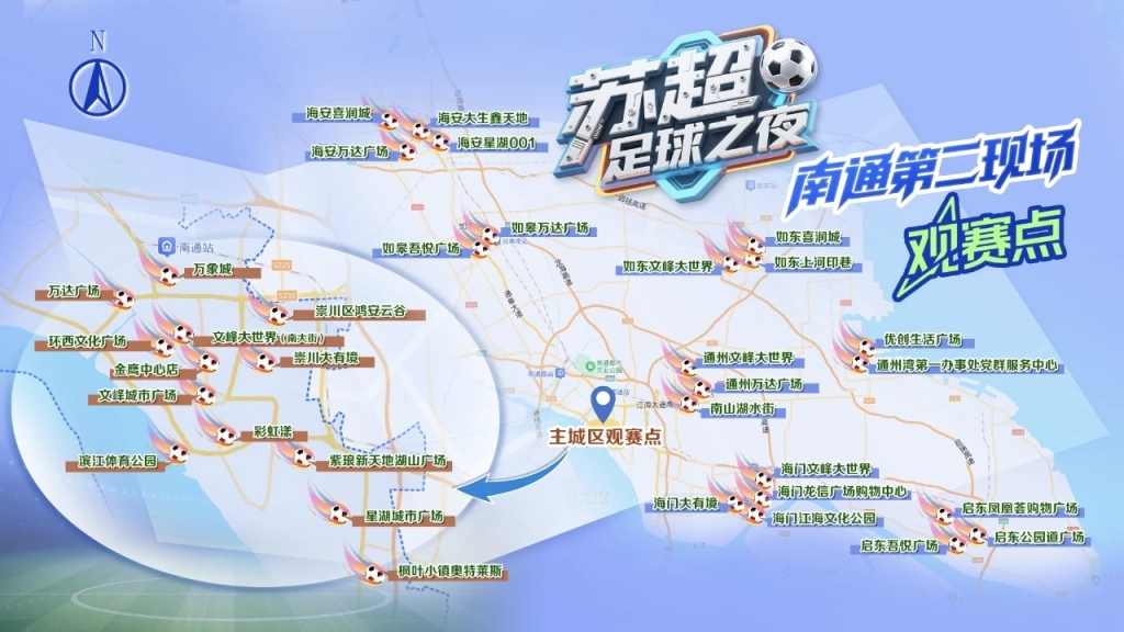 对于没有抢到票的球迷,南通方面也推出了“全域即主场”的概念——南通各地在广场、公园、商业街区等地推出了一批“第二现场”直播观赛点位,目前,南通34处户外观赛点已就位,巨幕看球也能过足瘾。