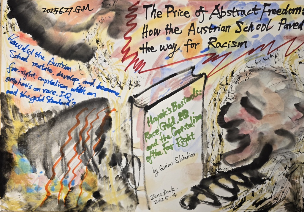 图2 抽象自由的代价:奥地利学派如何为种族主义铺路 纸本 彩墨 45cm X 65cm 李公明 作 2025年6月27日