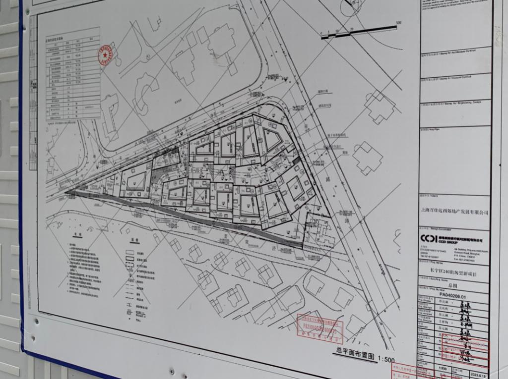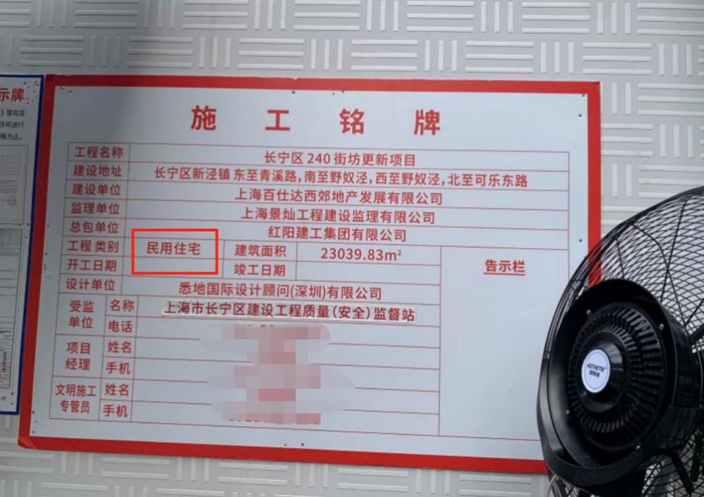 围墙外的施工铭牌写明了工程类别:民用住宅,建设单位为上海百仕达西郊地产发展有限公司(以下简称百仕达)。