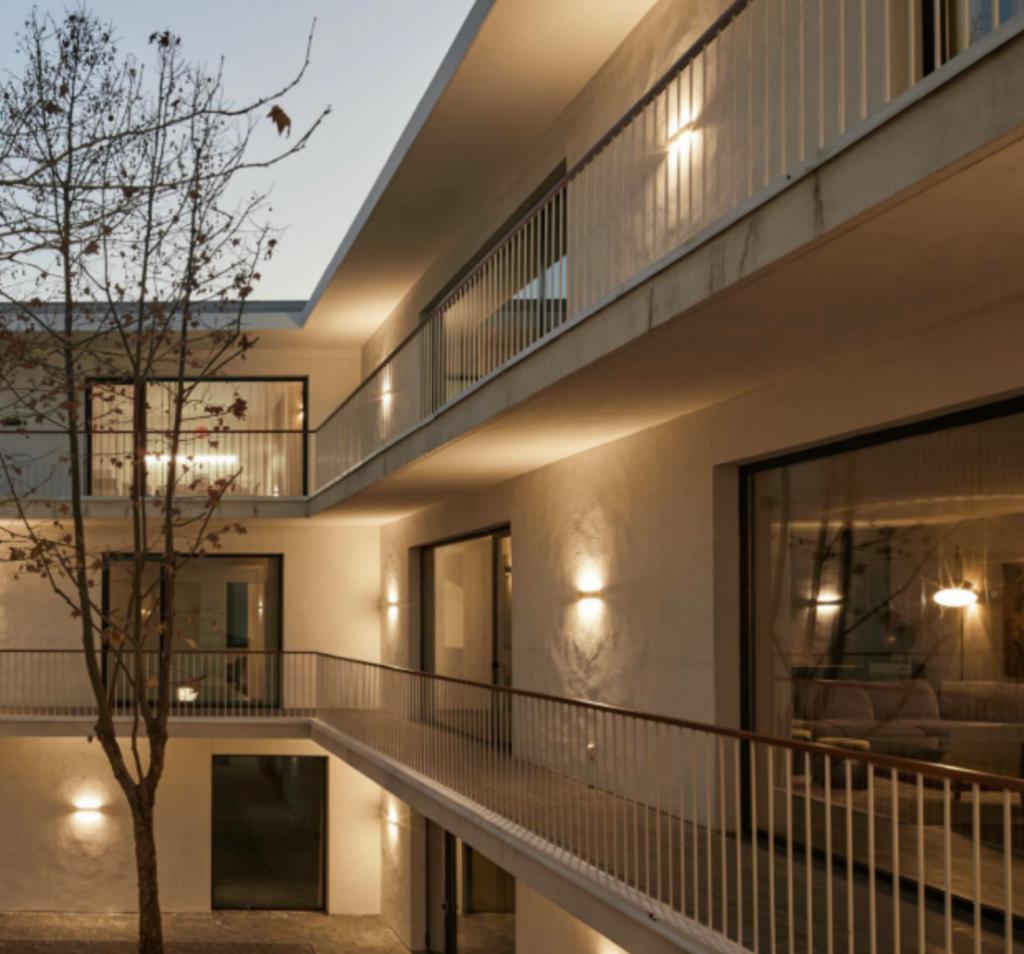 绿化掩映中,依稀能看见几个巨大的灰色 " 盒子 ",被凿出了大小不一、间距不等的长方形。" 盒子 " 们看上去相互连接,仅从外观判断,很难与住宅联系起来,不少参观过的人都觉得 " 风格难以接受 "。
