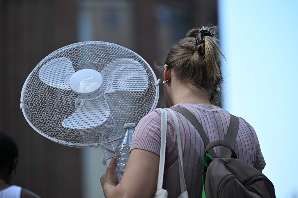 当地时间2025年6月30日,英国伦敦,高温天气持续,民众购买电风扇解暑。