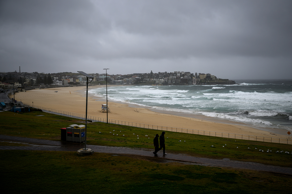 当地时间2025年7月1日,澳大利亚悉尼邦迪海滩,当地居民准备迎接恶劣天气,预计将有高达200毫米的降雨和每小时超过100公里的强风。