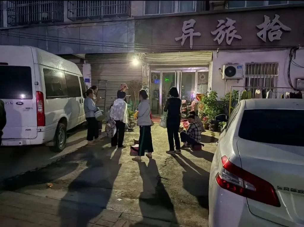 ●凌晨4点,女工们在旅馆前集合等待出工。殷盛琳 摄