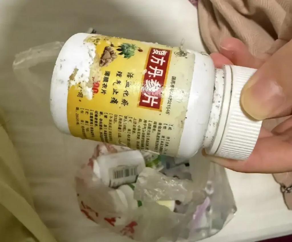 ●阿婆从家里带来了一兜子药。 殷盛琳 摄