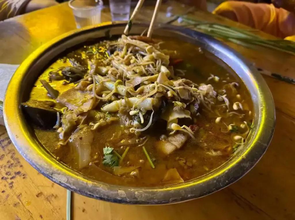 ●工期前几天的晚饭由中介负责,每晚都是一大盆煮菜。殷盛琳 摄