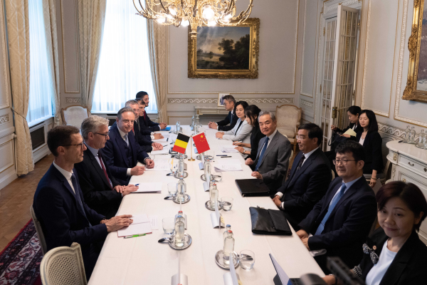 当地时间2025年7月1日,比利时首相德韦弗在布鲁塞尔会见中共中央政治局委员、外交部长王毅。
